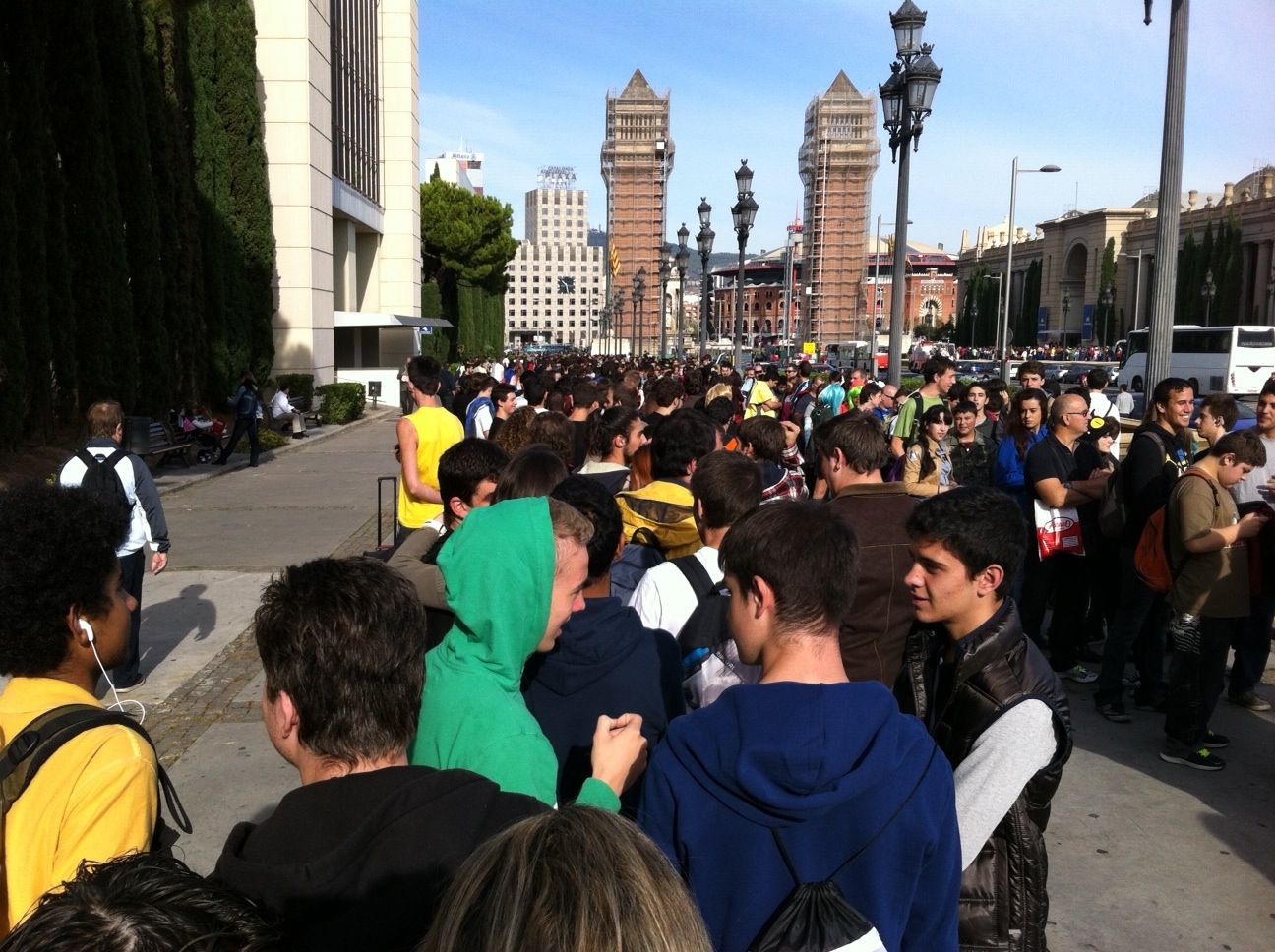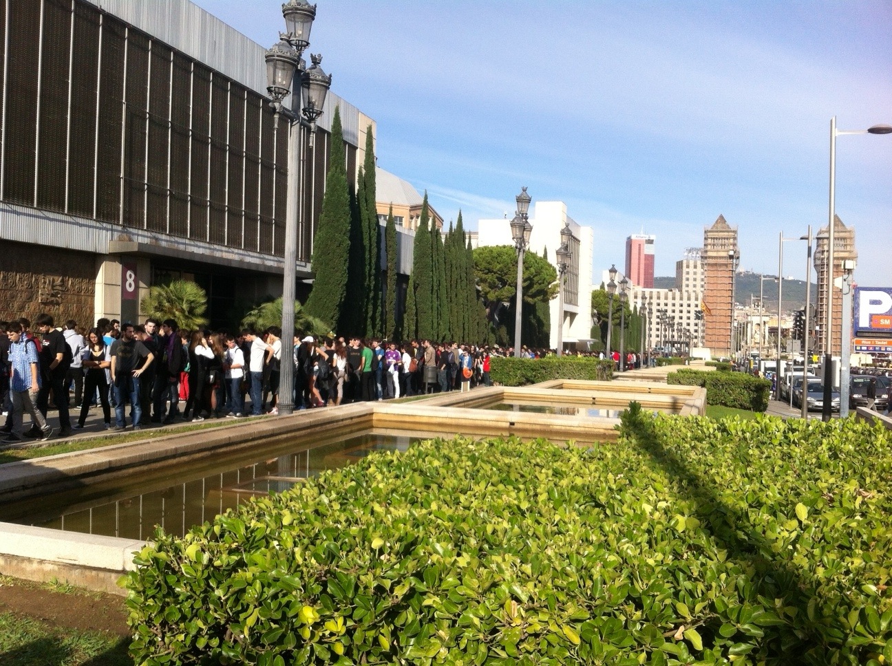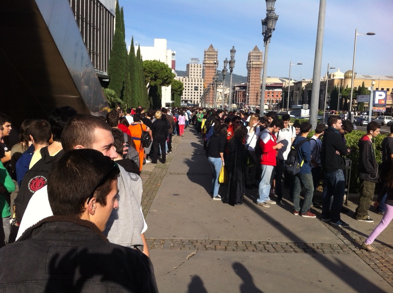 Me presenté en la plaza de España el viernes a las 10 de la mañana, siendo la primera vez que iba al evento en su nueva ubicación, ya que el año pasado no pude asistir y el anterior todavía se celebraba en la Farga de l’Hospitalet, un local bastante más discreto que el actual, y me encuentro que la cola, que empieza en las taquillas hace recorrido de ida y vuelta por toda la Av. Reina Mª Cristina, haciendo varias eses hasta la salida de metro… y esa era la cola para comprar entrada…