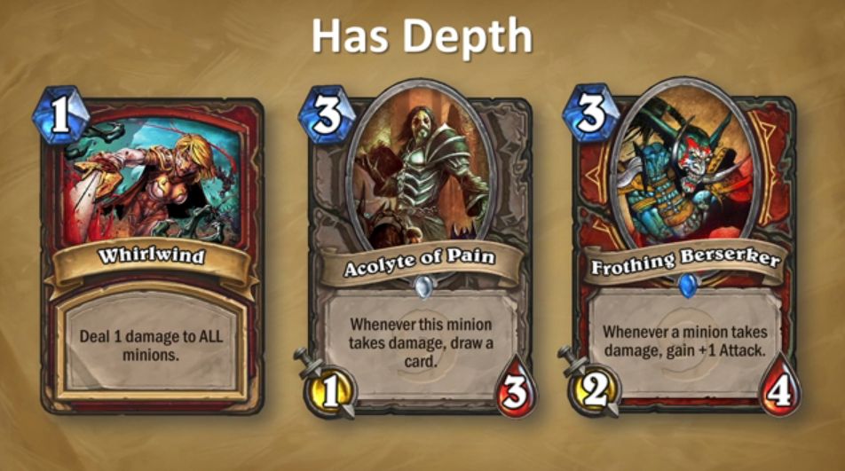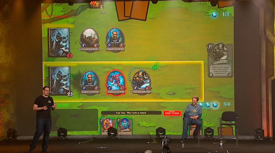 Han explicado como hacen para crear nuevas cartas, dejarlas simples para que aunque no las conozcas, de un vistazo sepas como funcionan al pisar la mesa de juego. Tambien como han hecho que interactuen entre ellas, como ellos crean una carta esperando que haga una cosa, y al combinarse con otras, los jugadores han hecho cosas que ellos no esperaban, tanto buenas como malas que han hecho que cambien algunas cartas, como el Acolito que permite robar una carta cada ver que recibe daño, que antes era un 2-4 y ahora es un 1-3.