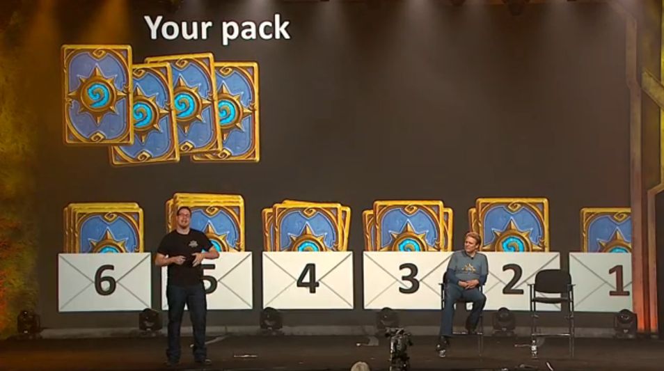 Al hablar del modo arena, han explicado como querian hacer una especie de draft online, y como lo han simplificado al modo actual. Como empezaron teniendo packs de 7 cartas y cada vez dando una menos al elegir con que carta te quedas, y repitiendo de nuevo hasta tener las cartas suficientes para hacer una baraja, hasta el momento de decidir que lo ideal es dar las cartas al azar de tres en tres y sólo cartas que sean validas para el heroe que has elegido, no pudiendo darte cartas de druida siendo brujo, por ejemplo.