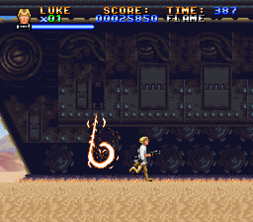 Habiendo nacido en 1977, es normal que me guste Star Wars. Recuerdo cuando había un cine en el barrio, antes de que existiesen los multicines, Una Nueva Esperanza fue la primera película que vi en la gran pantalla. Como en el anterior juego de Batman, este Super Star Wars tenía fases muy diferenciadas, de conducción cuando ibas a buscar a R2-D2 o cuando ibas de la granja de los Lars a Mos Eisley, de plataformas en las que podías elegir a Luke, Han o Chewbacca, y la final en la que pilotabas el X-Wing para destruir la Estrella de la Muerte. Pura adrenalina que fue acompañada tiempo más tarde con los respectivos Super Empire Strikes Back y Super Return of the Jedi, completando una trilogía imprescindible en la estantería de todo jugón fan de la saga.