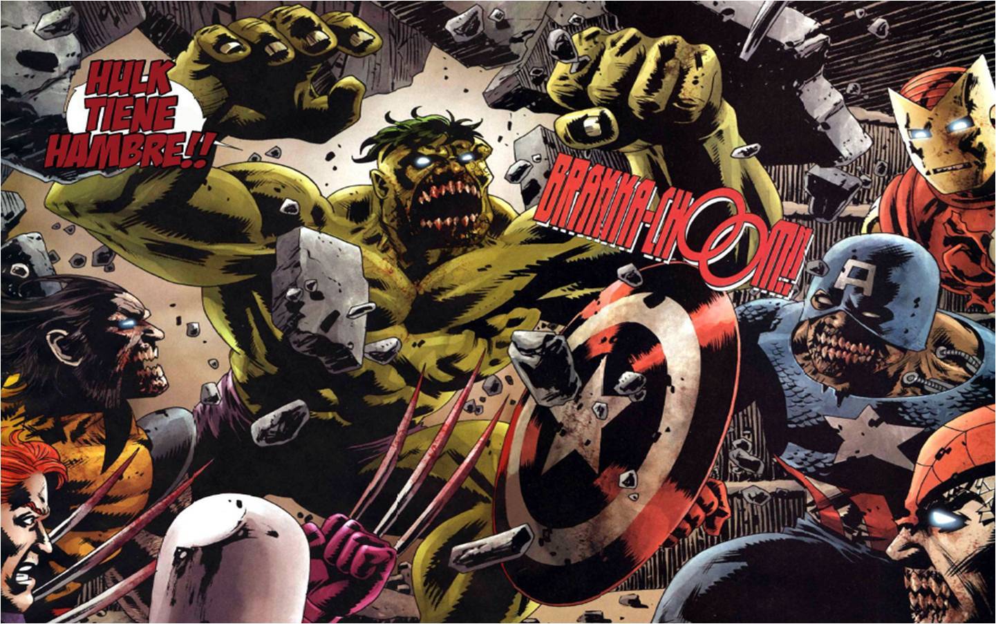 Marvel Zombies (Varios, desde 2005): Aparecidos originalmente en la serie Ultimate Fantastic Four, han salido varias series limitadas (en nuestro país, recopilados en tomos), y números especiales sobre estas versiones de los superhéroes clásicos de Marvel convertidos en no-muertos caníbales. Estos zombis conservan su inteligencia y sus superpoderes, menos la regeneración, como Lobezno, o la resistencia a toxinas. Pocos son inmunes a su efecto, y como curiosidad, si se les aísla un tiempo de la comida, se les pasa el hambre. Hay un cross-over bastante entretenido con Ash, de Army of Darkness, y series cuyos protagonistas son eternos secundarios, como Morbius el vampiro viviente, el Hombre Máquina o Howard el Pato.