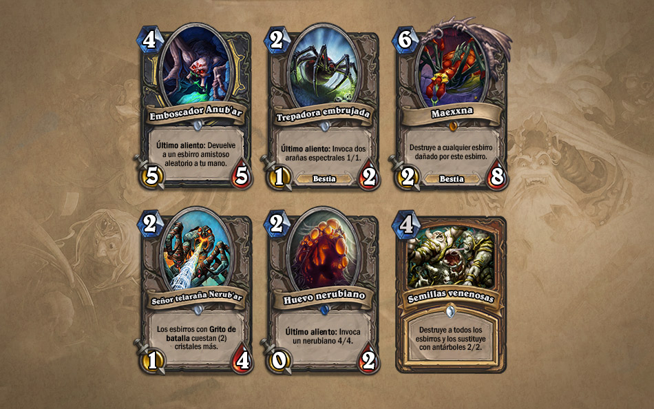 Señor telaraña Nerub’ar (Común): Coste 2 – 1/4. Los esbirros con Grito de guerra cuestan (2) cristales más.