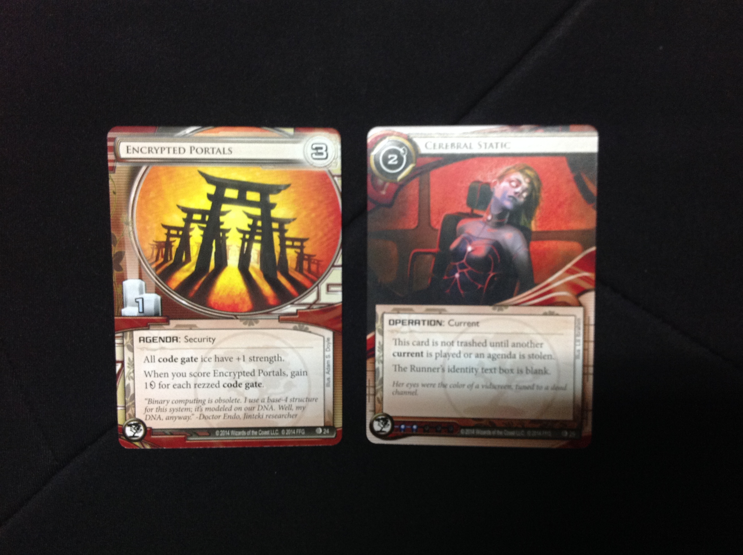 Encrypted Portals: Nuevo plan 3/1 de una serie que enfoca a las barajas a llevar hielos mono-tipo, en este caso Puertas de Código. Da +1 fuerza a todas las Puertas de Código, y ganas 1 crédito por cada una ejecutada en el momento de puntuar este plan. Y al ser otro plan de 1 punto, si te lo roban sube el daño de Philotic Entanglement.