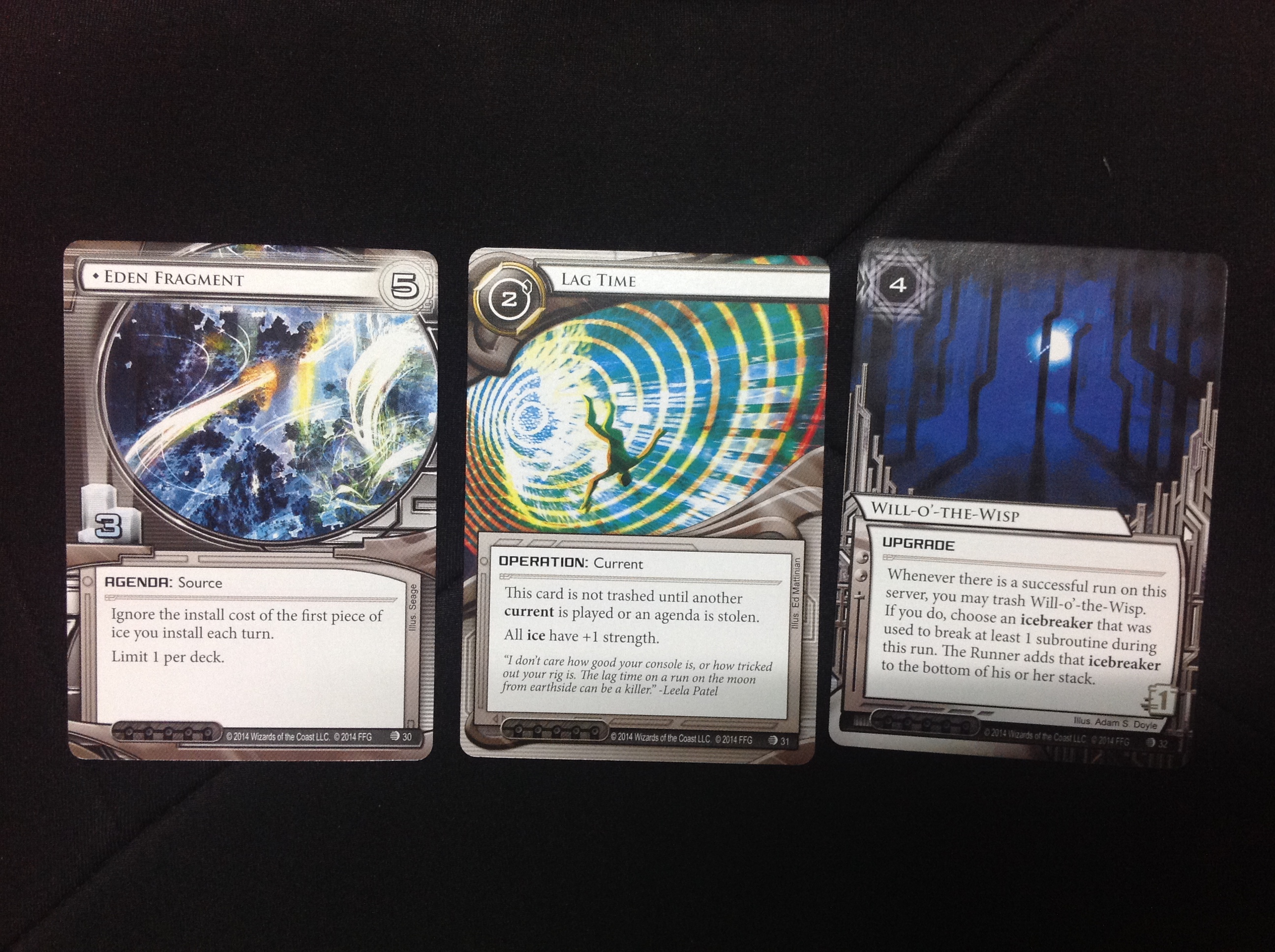 Will-o’-the-Wisp: Un nuevo estilo de trampa, que en vez de hacer daño o romper programas, envía un rompehielos usado durante la incursión fondo del mazo del runner. Compensable llevando Window, quien lo diría, pero seguro que más de una sorpresa nos llevamos, ¡y podremos romper Knights sin tener que destruirnos los hielos!