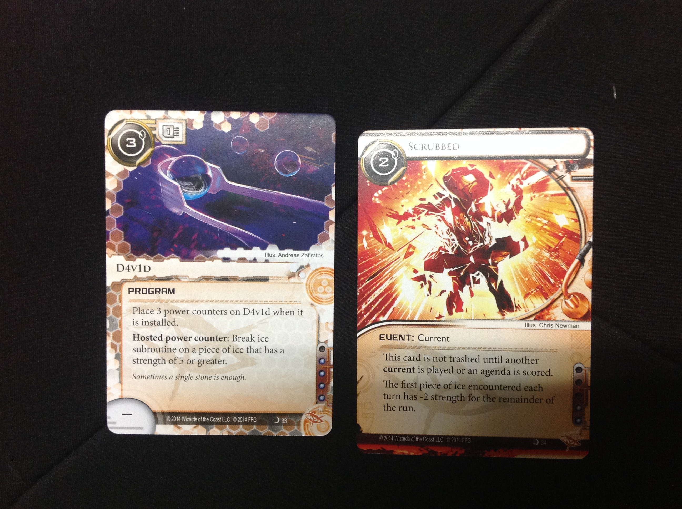 Cache: ¿A quién no le gustan los Virus?, y más si son baratos. Este es muy útil contra Heinlein Grid ya que se pueden sacar los créditos en medio de la incursión, y a parte comba muy bien con Grimoire al acumular un contador más, y cuando le hayas quitado los contadores, lo vendes a la Aesop’s Pawnshop. Y con Scheherazade, una ganancia total neta de 7 créditos por un clic.