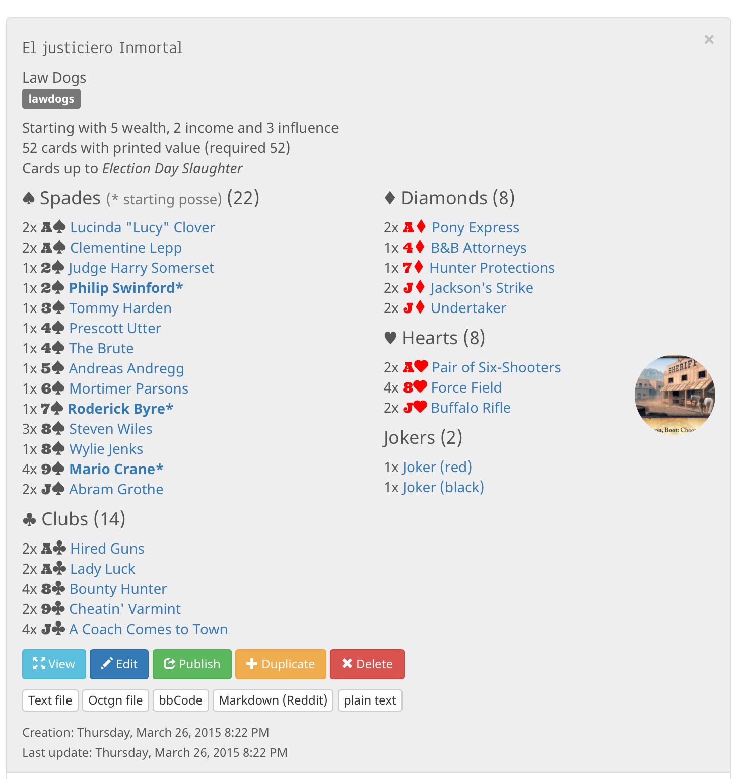 Con esto ya tenemos Nuestra baraja del justiciero immortal, y solamente queda comentaros que desde The Boot Hill están preparando Seis Balas: Liga de Doomtown Barcelona a la que por supuesto nosotros nos apuntaremos.