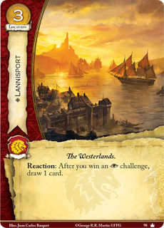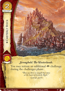 Hablando de combar con ganar retos de intriga… 1 carta por ganar un reto atacando o defendiendo esta muy bien, sobre todo porque el coste no es caro comparado con otras cartas y su condición es fácil de cumplir para robar por lo menos 1 carta por turno, si además ponemos roca Casterly en mesa ya ni hablamos … ahogados en cartas, espero que tengáis las manos grandes.