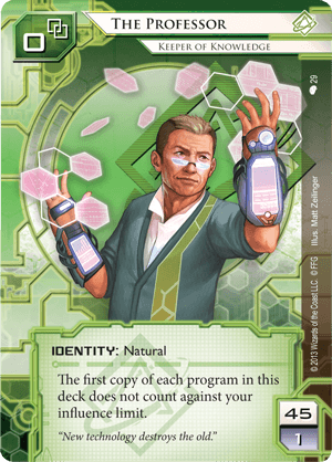 La baraja es la que usé como runner, y es una baraja de The Professor, Keeper of Knowledge.
