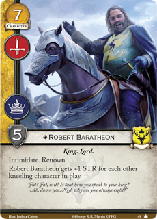 Robert Baratheon tiene +1 de fuerza por cada otro personaje arrodillado en juego.