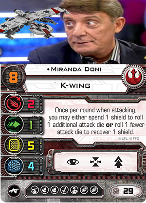 En esta última wave los chicos de FFG han sacado dos naves grandotas en base pequeña, ambas con una cantidad de armamento absurda. La primera que revisamos es el K-Wing conducido por Miranda, la hija del Dioni.
