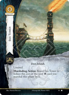 Acción reclutamiento: Arrodilla la Torre del mar para reducir el coste de la siguiente carta Greyjoy en 1 esta fase.