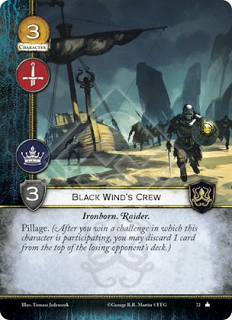 Personaje sosito a la vista, pero con sigilo. Ayuda a que Greyjoy gane sin oposición retos de poder, además es bastante barato. No viene nada mal en la baraja.